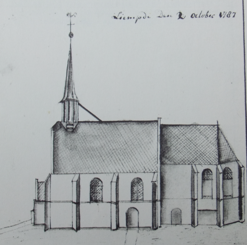 LIEMDE Een klein dorpjen, een uur ten westen van St Oda Rode en een klein uur ten zuidoosten van Boxtel gelegen, werd ten jare 1420 door den Hertog van Brabant aan Wim Heer van Boxtel, uijtgegeven als Heelijkheid, voor getrouwe diensten aan den Hertog beweezen, het is zederd altijd aan de Heeren van Boxtel in eigendom gebleven. Dit dorpje dat ongeveer 900 inwoners heeft en alwaar de huizen zeer verspreid liggen. Heeft een klein kerkjen met een klein spits Toorentje op de westgevel, aan de linkeroever van de Dommel, dit kerkjen, dat aan St. Jan de Dooper is toegewyd, en een weinig van de huizen verwijderd ligt, wordt niet gebruikt. Er ligt te Liempde ook een klein Raadhuisjen, en aan de steenweg, die er een kleine halve uur vanaf ligt, heeft men een Barriere, de Liemder Barriere genoemd; verders heeft men er niets bijzonders. Liempde hetgeen oudtijds Leymde, en thans gewoonelijk Liempdt wordt geheeten, zou zijnen naam (volgens sommigen) ontleend hebben van den klei of leemachtigen grond, welke hier wordt gevonden.