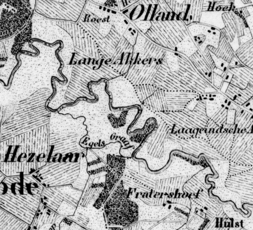 De watermolen van Antsel is bekend als een runmolen (malen van eikenschors voor leerproductie) en bestaat al in 1372. De molen maalt in de 16e eeuw voor het laatst. Deze watermolen kent dezelfde eigenaren als de Kasterense watermolen, de heren van Boxtel. Toch is er een duidelijke verbinding tussen de Antselse watermolen en Leengoed Den Hulst via de Egelsgraaf. Via de Egelsgraaf wordt vanuit de Dommel, ter hoogte van ongeveer het huidige Rooise landgoed Den Hulst en 450 meter oostelijker van de Antselse watermolen, water afgetakt van de Dommel en 'binnendoor' naar de Groote Waterloop geleidt. De Egelsgraaf ligt geheel binnen de voormalige gemeente Liempde en is voor een deel ook de grens tussen Sint-Oedenrode en Liempde. In 1625 werd de grens tussen Liempde en Sint-Oedenrode nogmaals vastgesteld. In dezelfde kamer zittend van Den Hulst aldaar had de een gezegd 'ik zit nu in Liempd' en de ander had gezegd 'ik zit nu in Rooi!' Dit geeft wel aan hoe dicht Den Hulst bij Liempde ligt. Net voor de Antselse watermolen mondt deze 750 meter lange gegraven loop uit in de Groote Waterloop (zie afbeelding). De Egelsgraaf zorgde voor een grotere maalzekerheid van de Antselse watermolen. Blijkbaar had de leenman van Den Hulst hier belang bij. De naam van deze loop refereert aan de echel, de grote bloedzuiger. Van de Egelsgraaf is momenteel alleen een laagte over. Eerder, in 1736 was de Egelsgraaf veel groter, de verpachter Christiaan Huijgens behield het visrecht op de Egelsgraaf aan zichzelf bij de verpachting van het leengoed Den Hulst. |